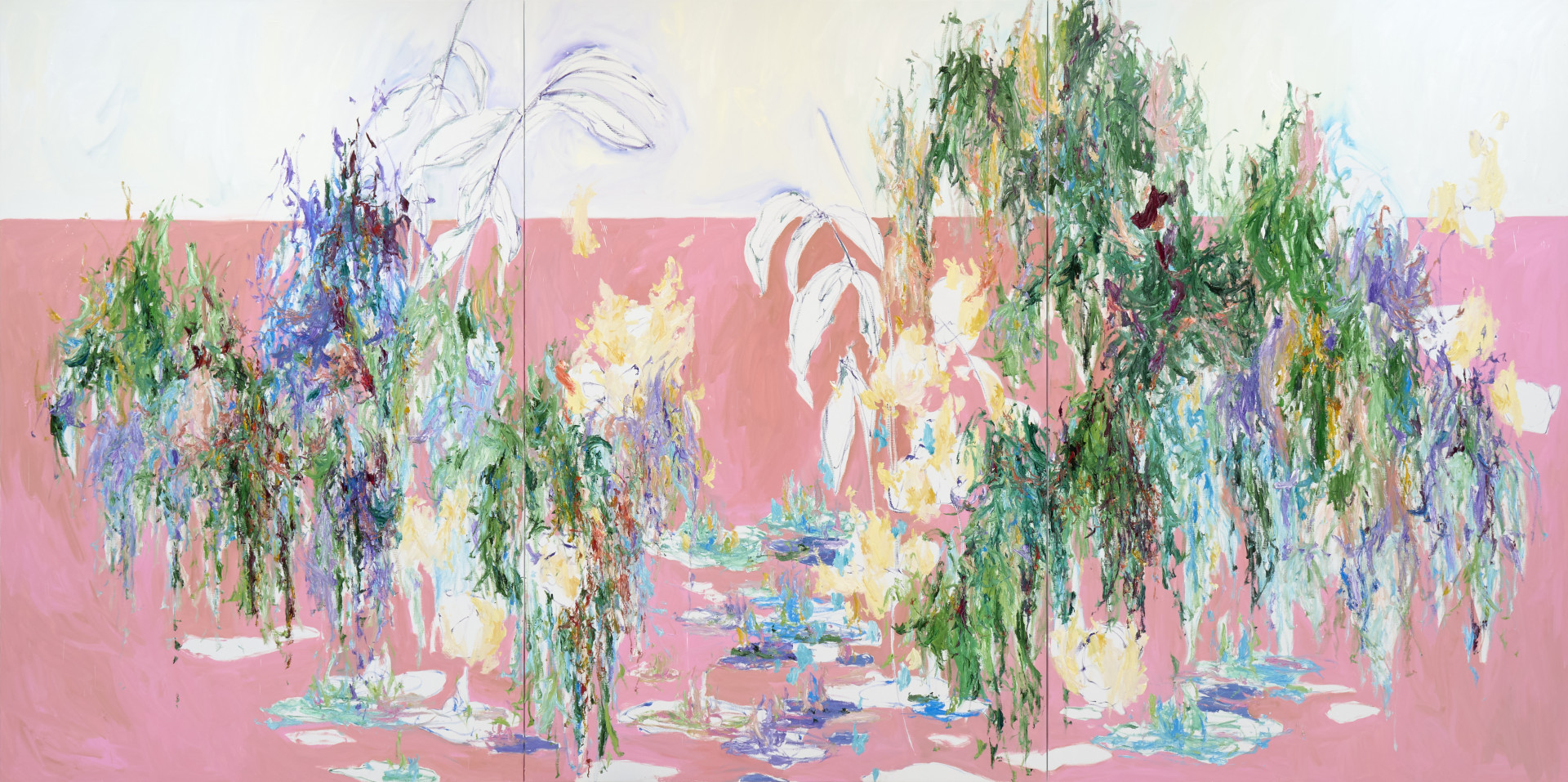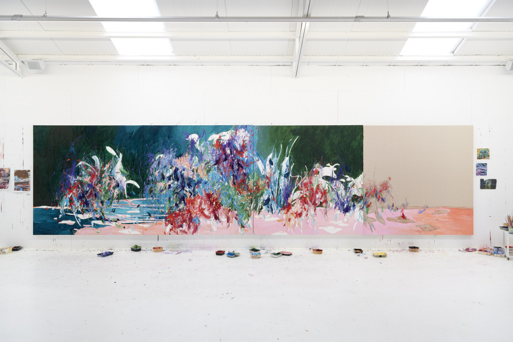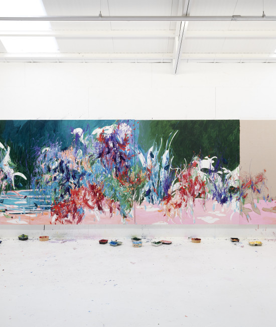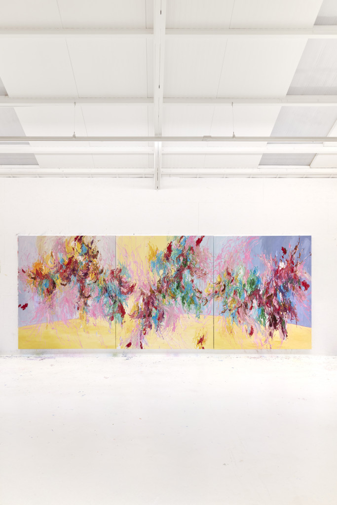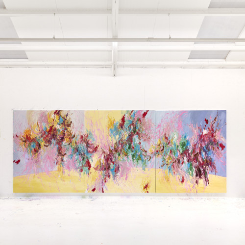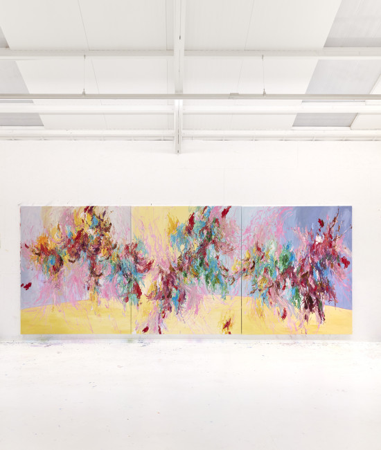 Le superfici, attraversate da tensioni cromatiche e stratificazioni dinamiche, non descrivono il paesaggio, ma ne restituiscono l’energia vitale, tra crescita, collisioni e metamorfosi. Pittura e installazione si rivelano così due manifestazioni dello stesso nucleo creativo: un’indagine sulla forza generativa della vita e sulla necessità di riportare equilibrio e varietà negli spazi abitati dall’uomo.