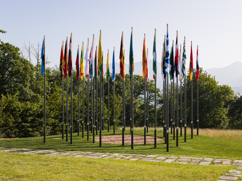 La questione ambientale non può essere affrontata solo nel recinto chiuso di ciascuna nazionalità: serve un approccio aperto, che superi i confini, che smonti le rispettive appartenenze geografiche e culturali per rimontarle in una prospettiva dialogante con tutti. Ecco il significato dietro i collage di Svensson con le bandiere del mondo, che sono state de-costruite e ricomposte in modo casuale. Ogni singola bandiera perde così il proprio carattere distintivo e identitario, le linee che delimitano i nostri confini sono pure convenzioni, mentre la natura è quello spazio che non conosce limiti né divisioni.